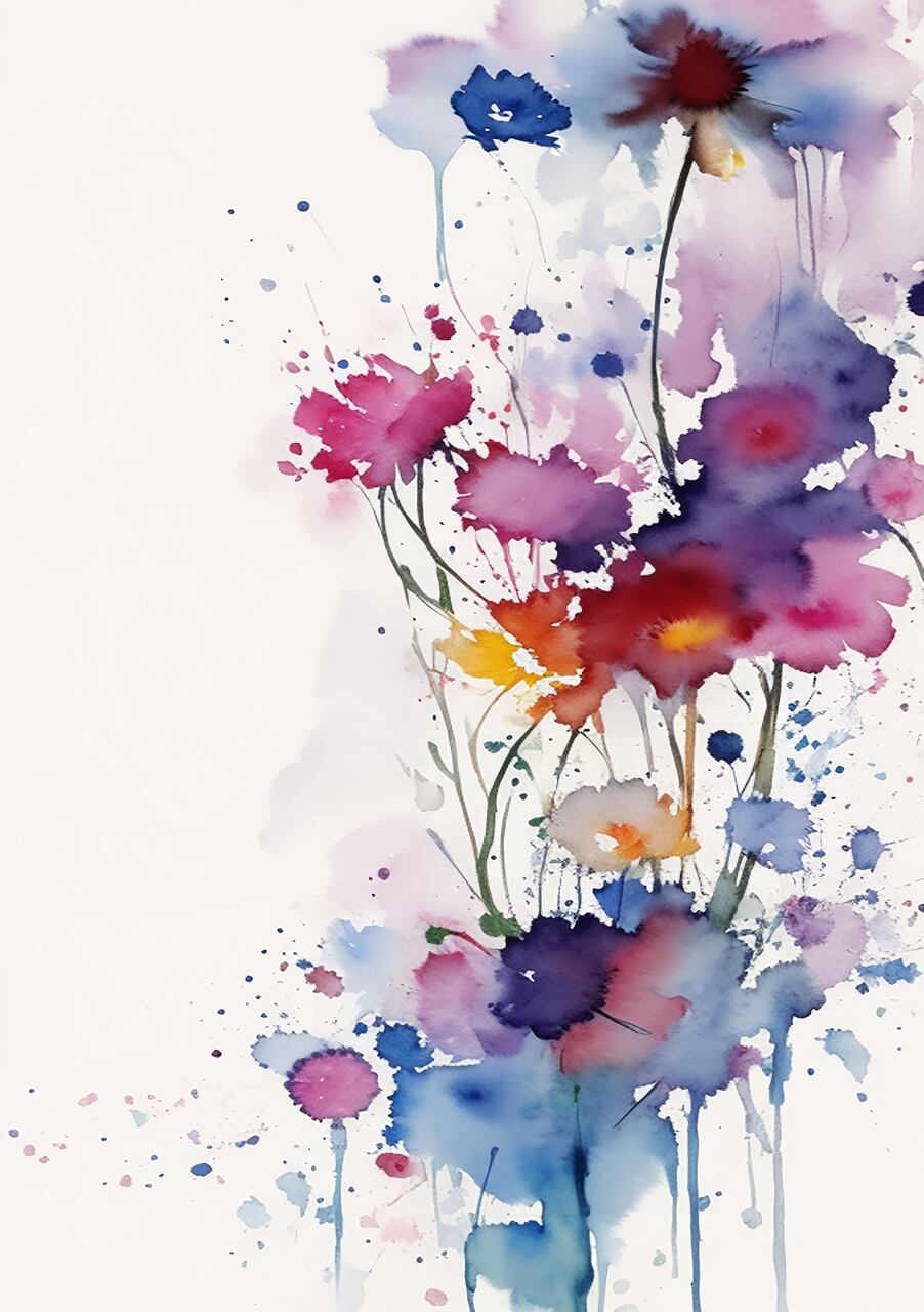 【470】 【ポスター】フラワーペイント ブルーパープル 6