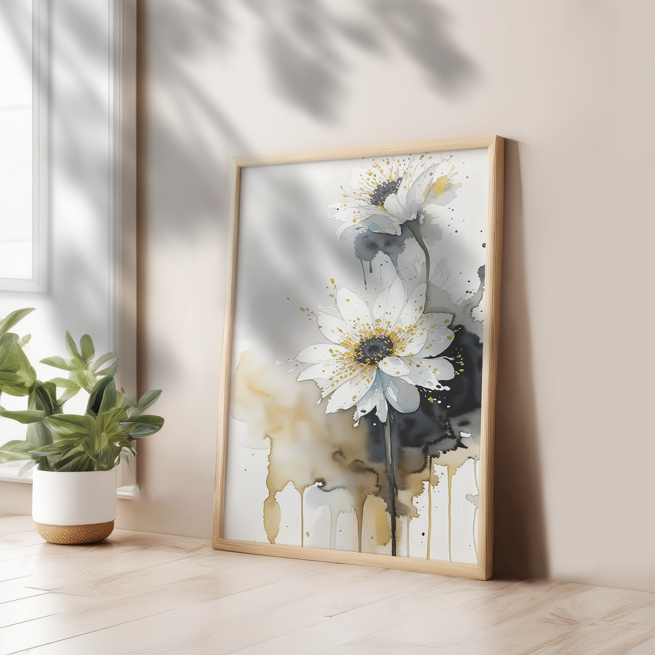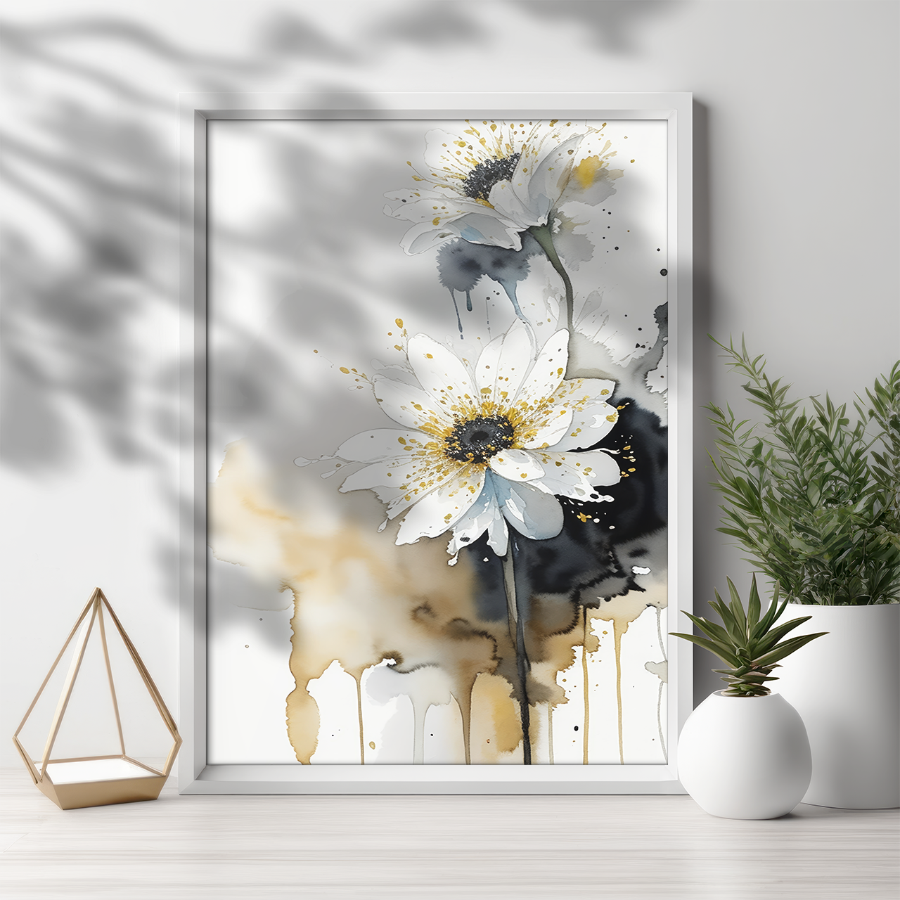 【474】 【ポスター】フラワーペイント ブラックゴールド 1
